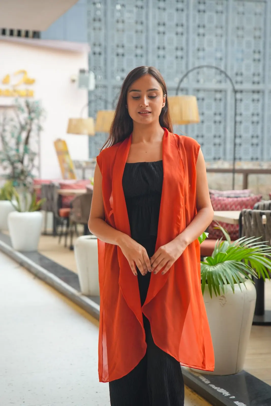 Wrap yourself in the rich glow of this rust orange cardigan, where earthy tones meet effortless style. With its soft, flowy silhouette and autumn-inspired charm, it adds instant warmth and depth to any look. Perfect for golden hours, crisp evenings, or anytime you want to radiate natural elegance.